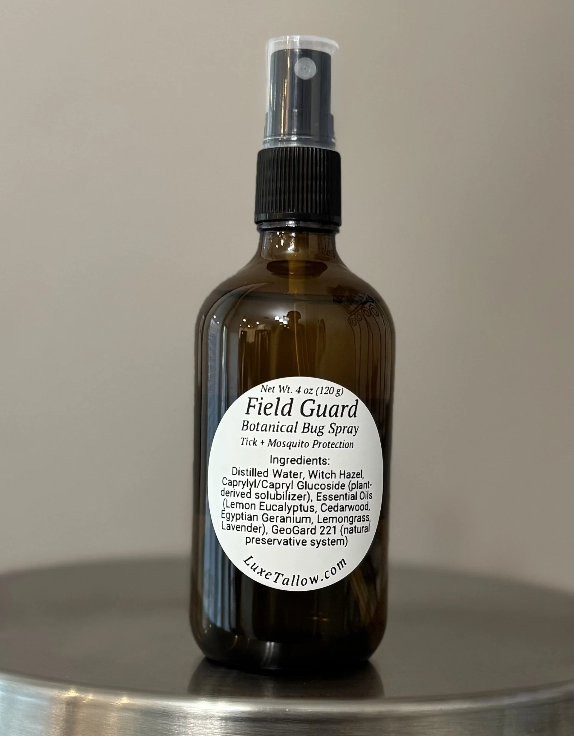 Field Guard is a DEET-free botanical spray designed to help repel ticks and mosquitoes while remaining gentle on skin. It applies evenly, absorbs quickly and leaves no oily residue or separation.